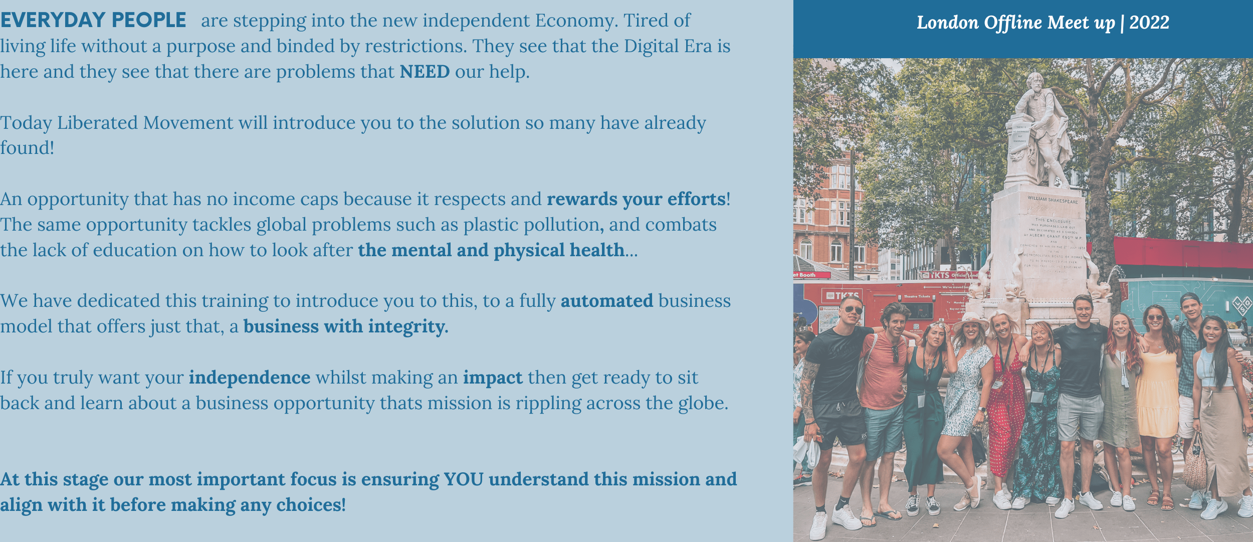 If you align with this mission and commit to working, you will experience the true feeling of Liberation.